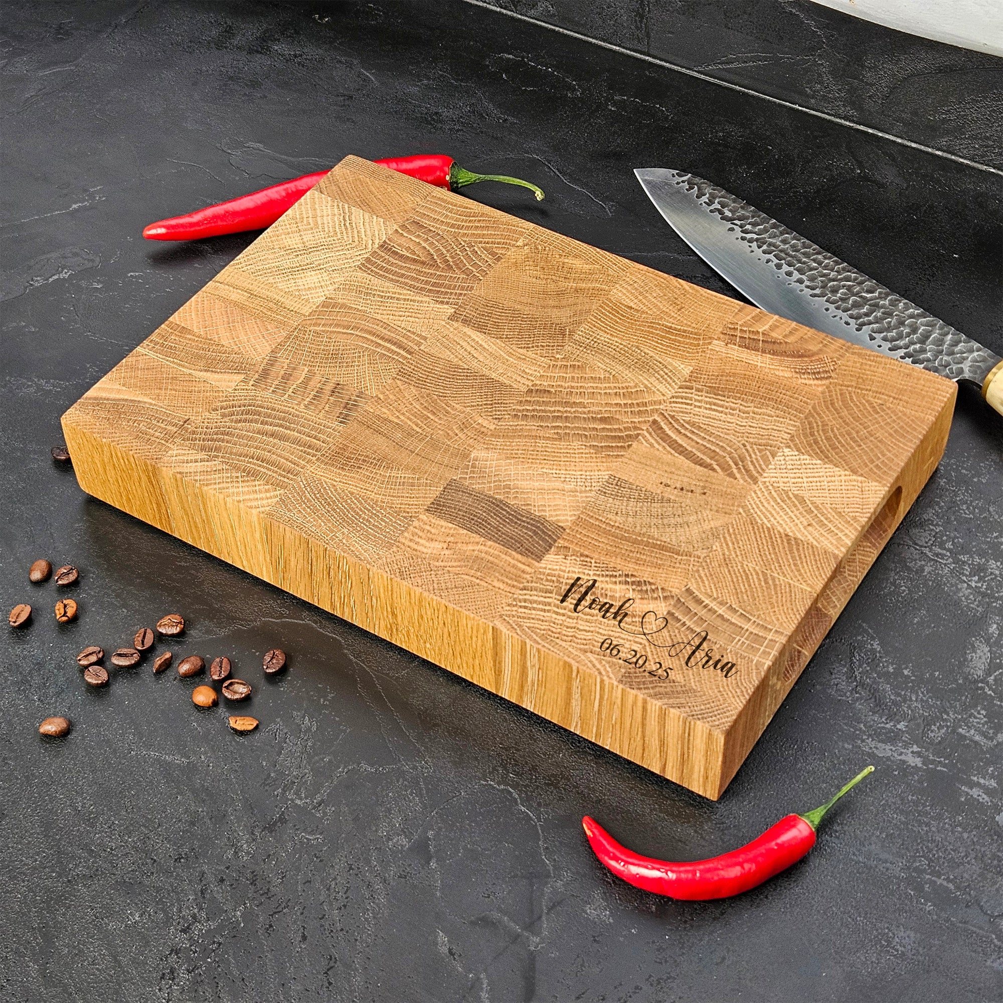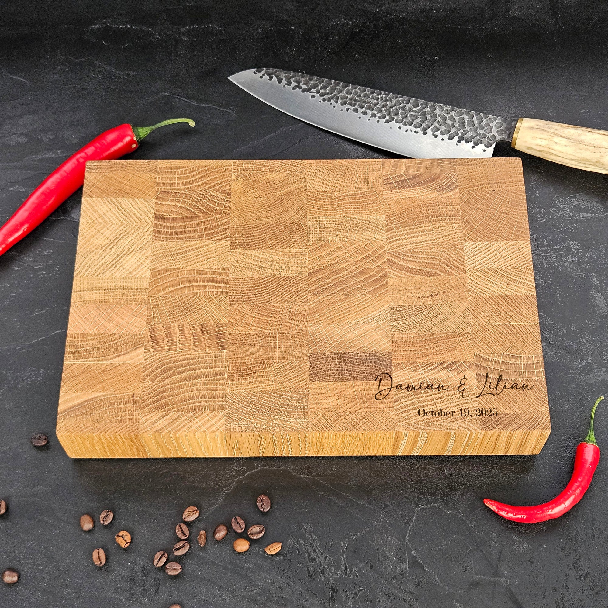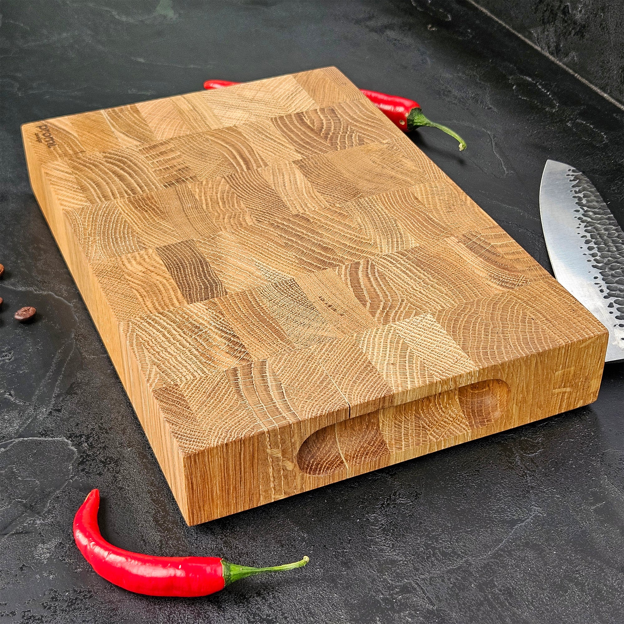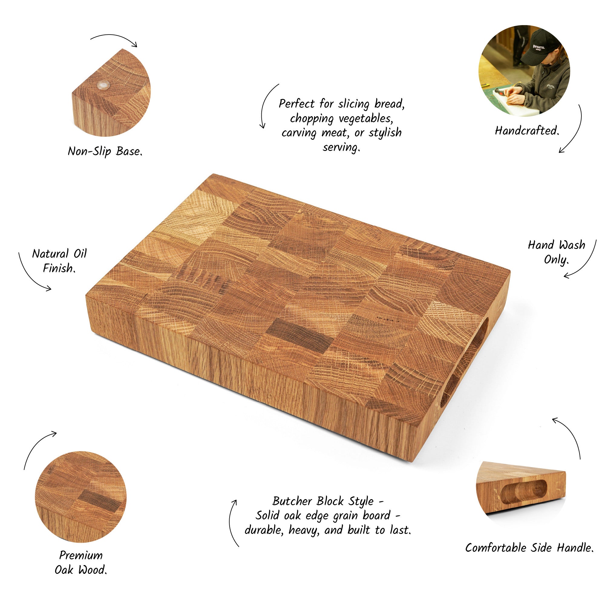 This oak cutting board is crafted from solid oak, offering strength and reliability for everyday kitchen use. Perfect as a handmade oak cutting board, rustic oak serving board, or oak charcuterie board, it also makes an ideal kitchen gift, housewarming gift, or chef gift.