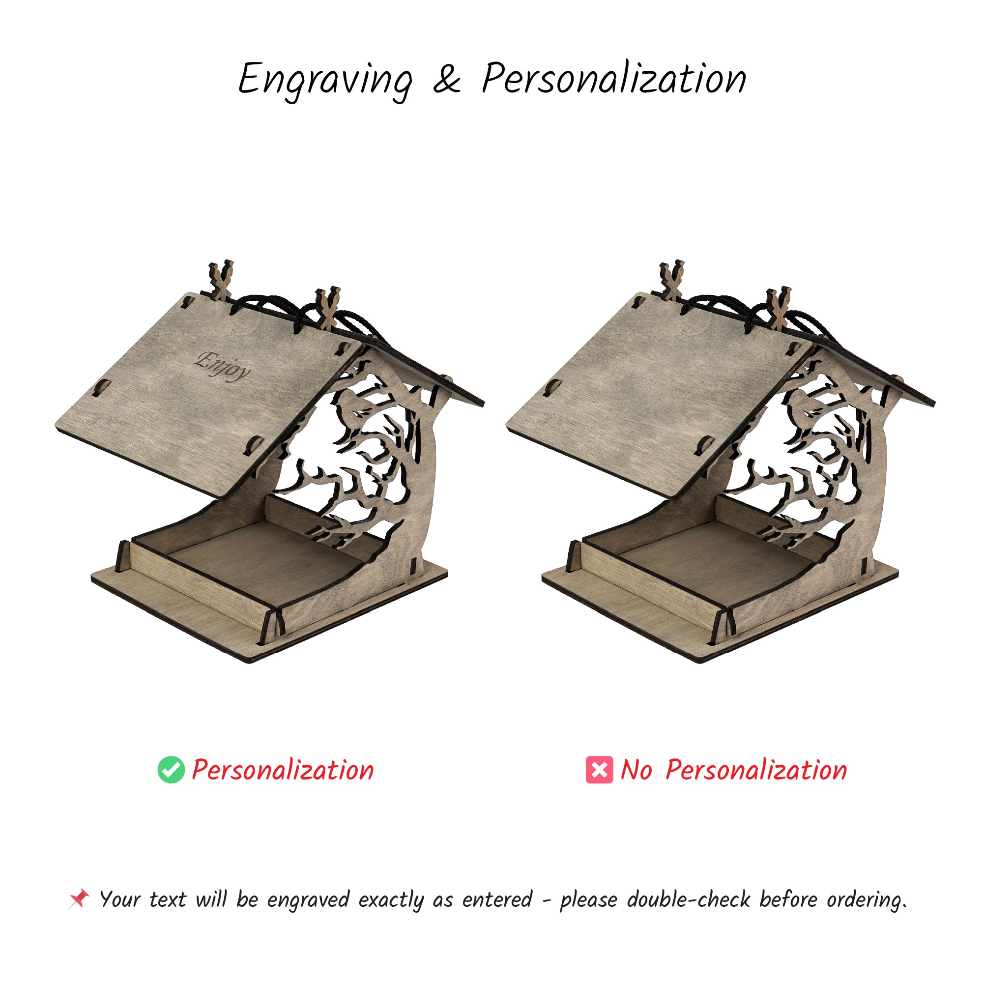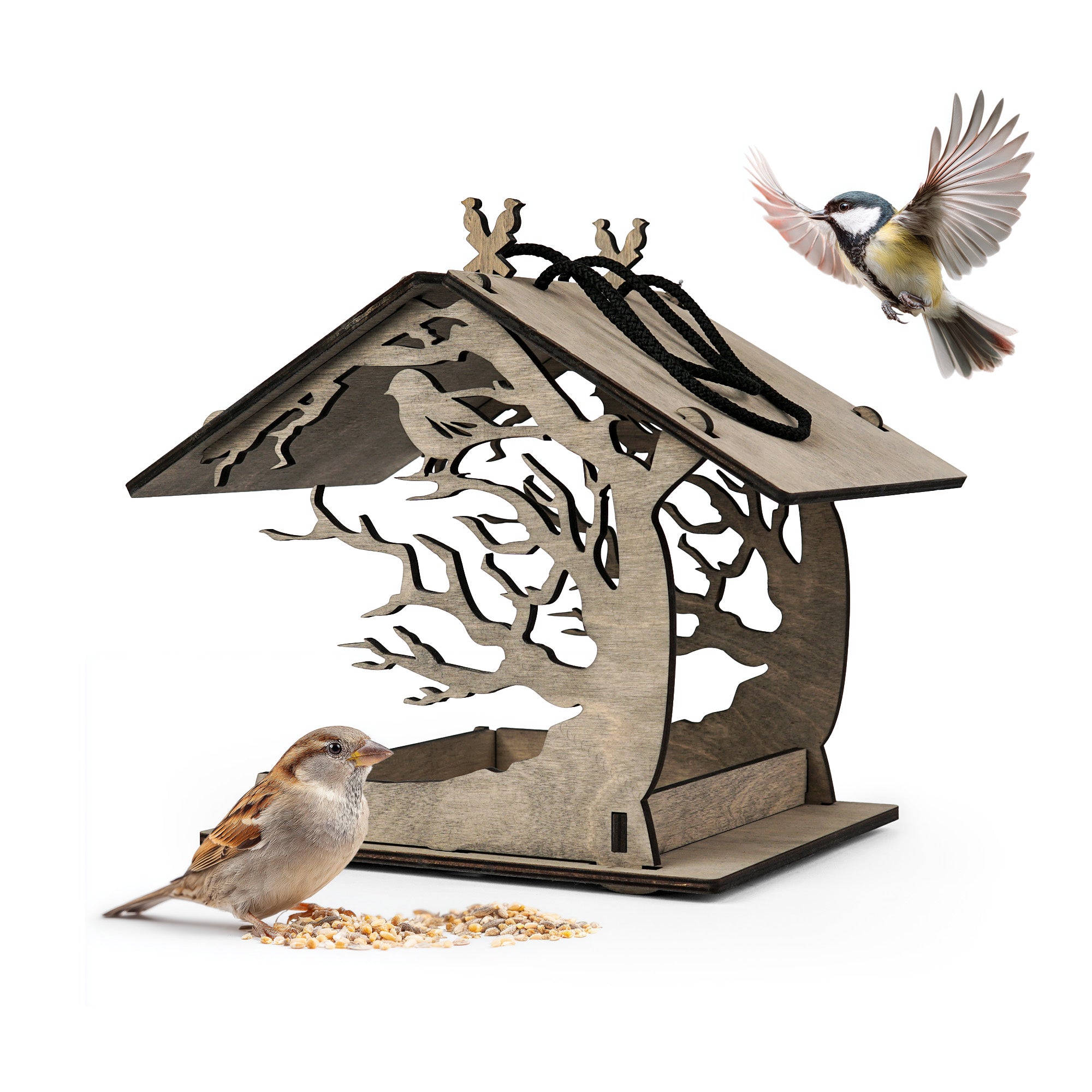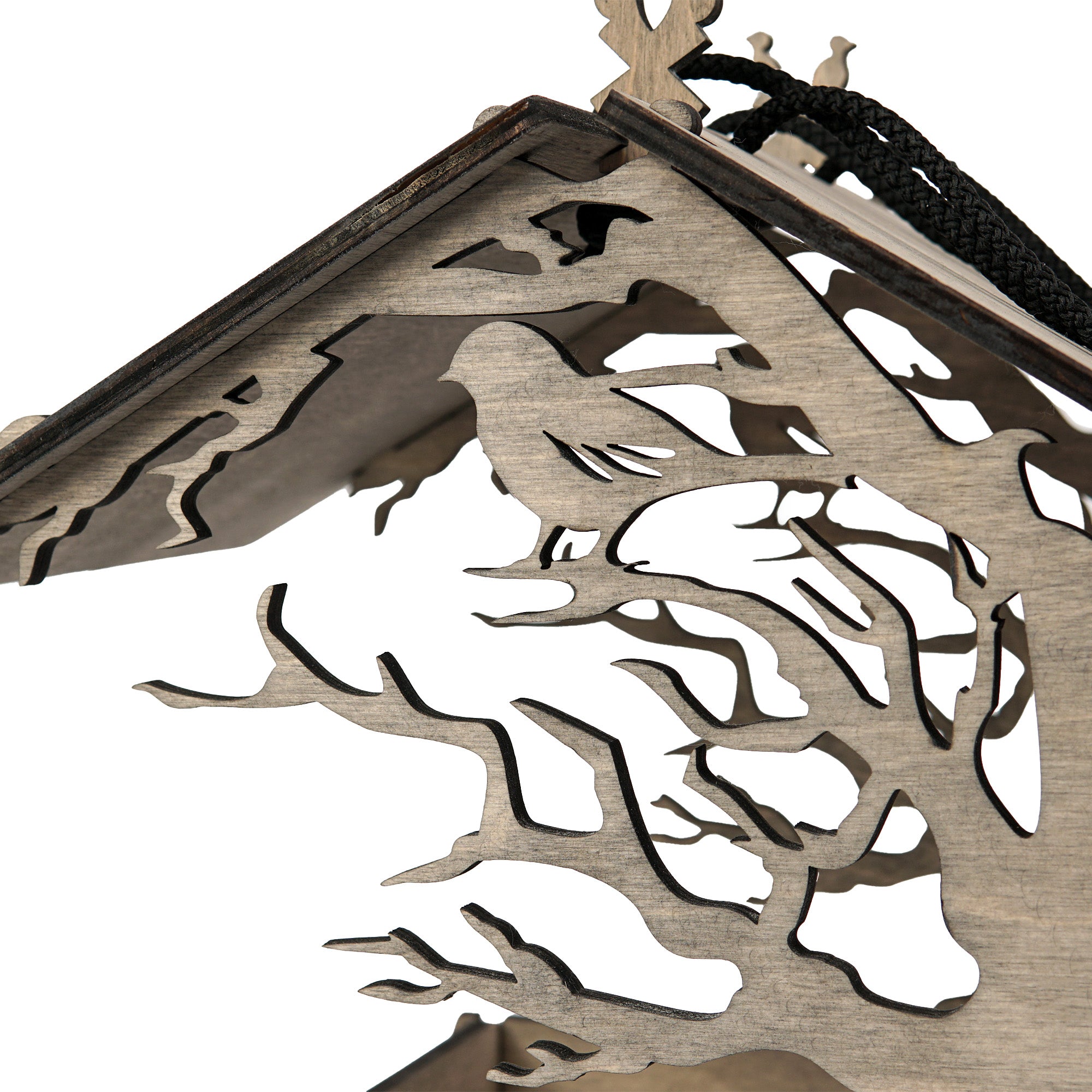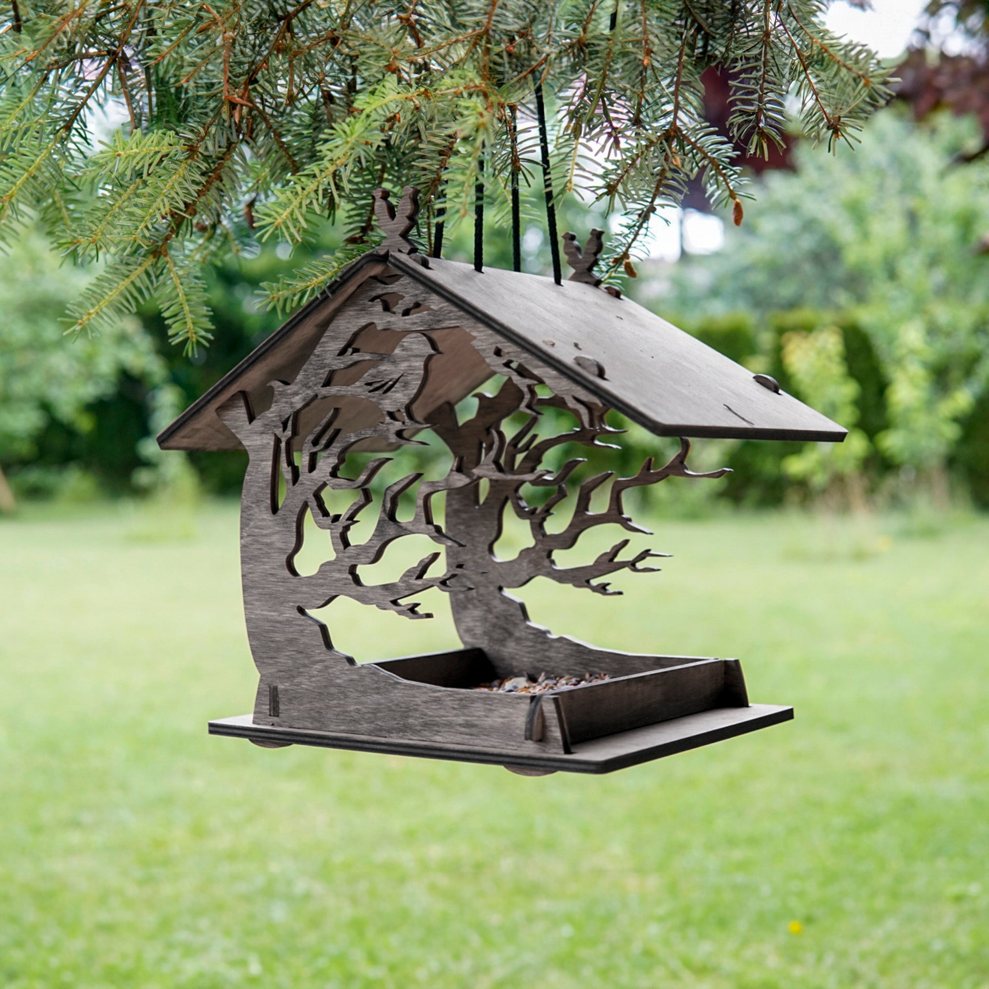 • Design: Open feeder style with an elegant tree motif and perched bird details