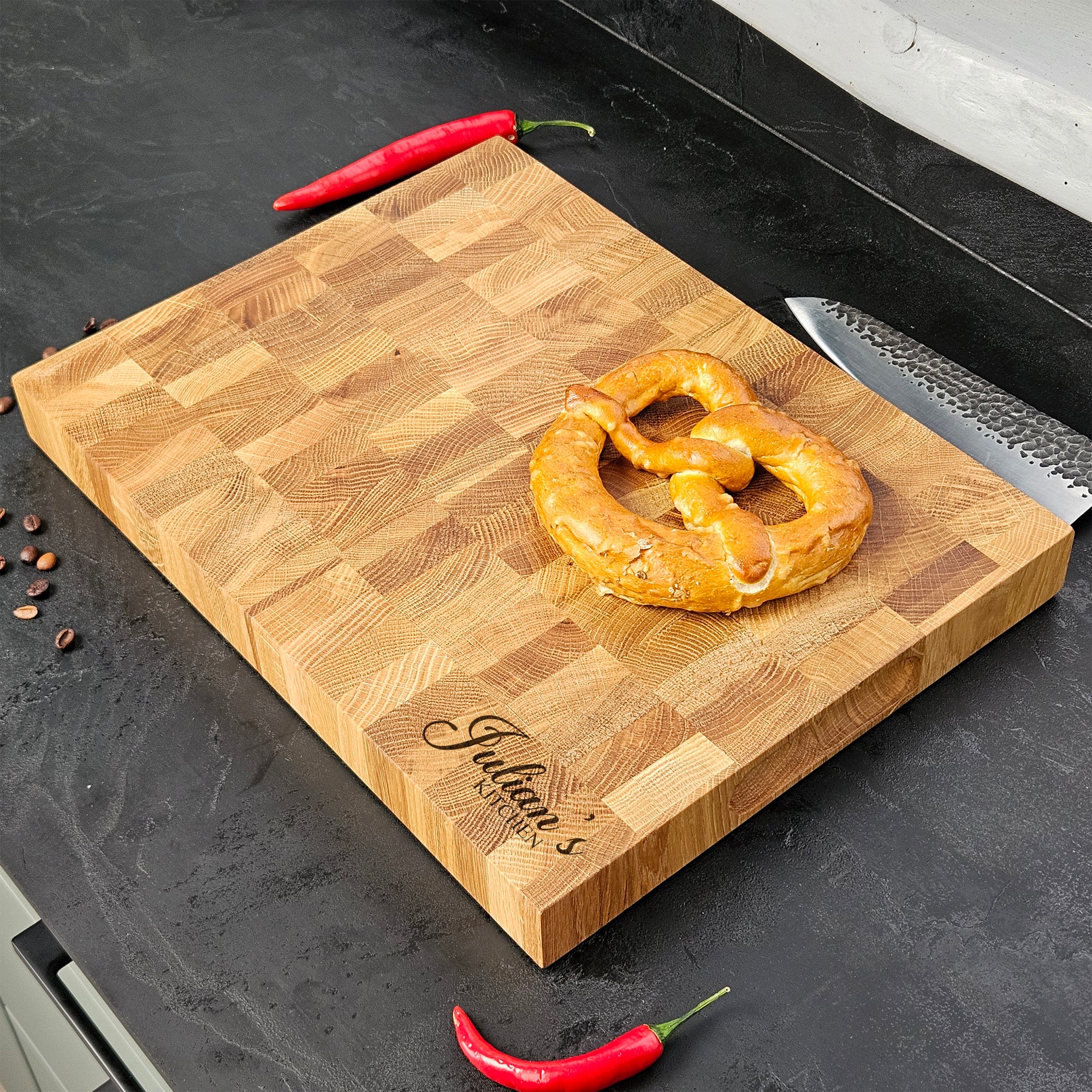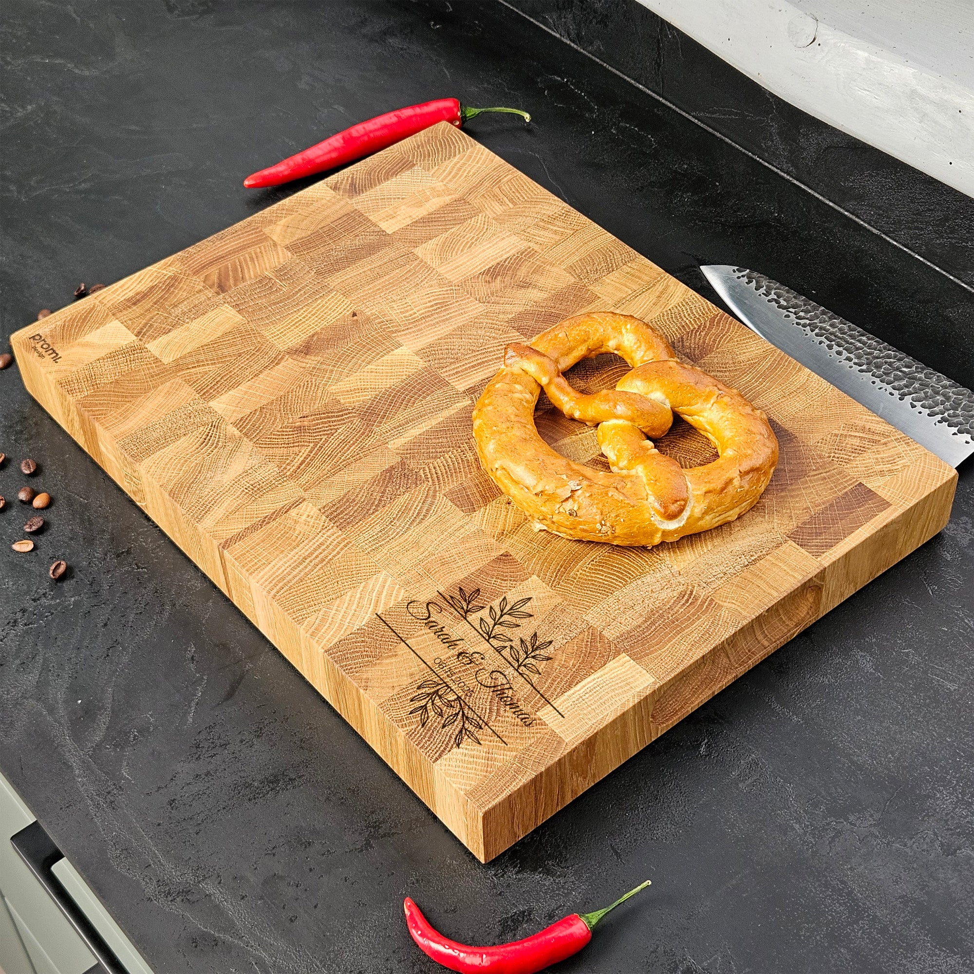 This wooden cutting board is built for daily use, offering a sturdy surface for chopping vegetables, cutting bread, or preparing meats. The natural oak finish gives it a clean, timeless look that fits any kitchen style. A reliable choice for anyone who wants a long-lasting kitchen essential that can also be personalized for special occasions.