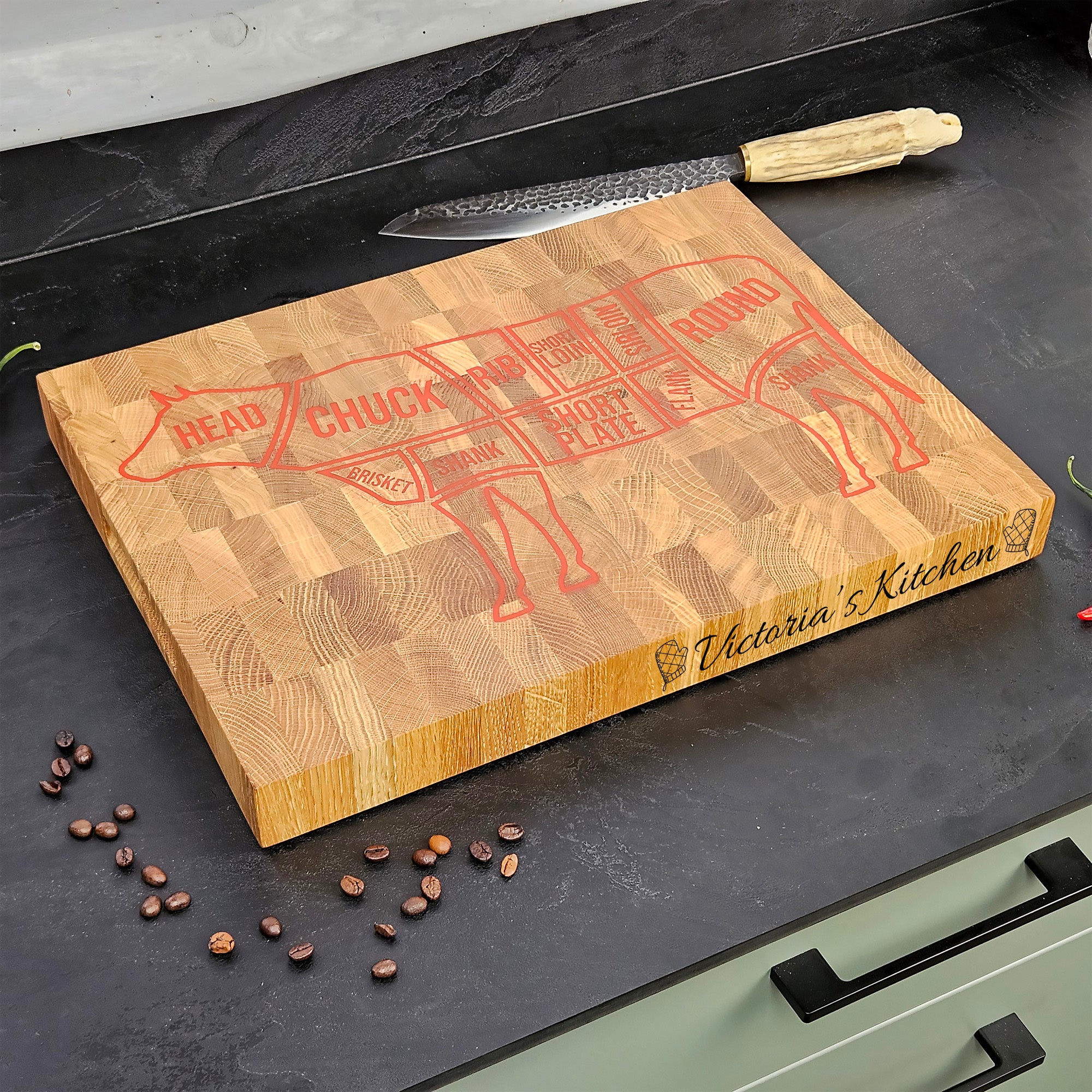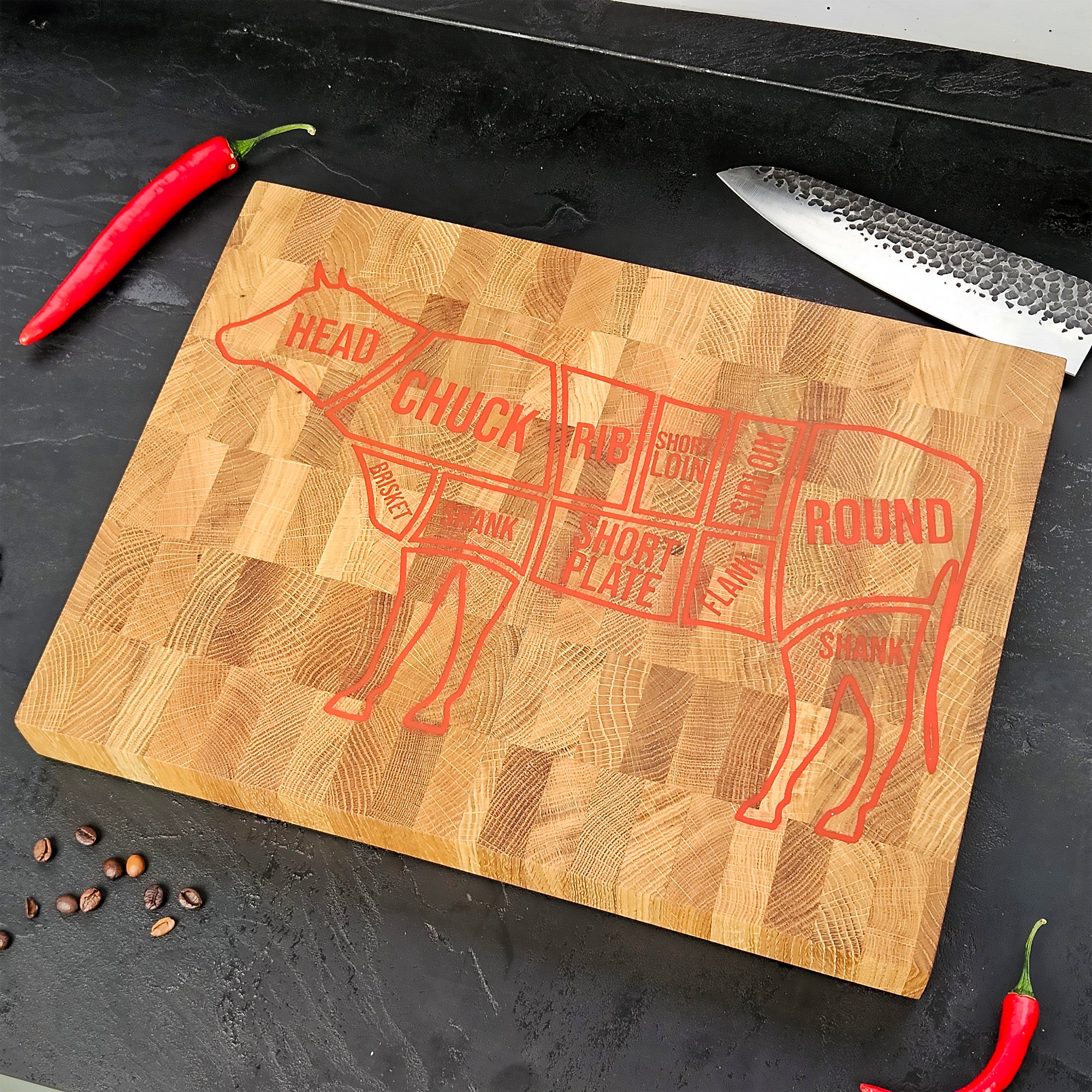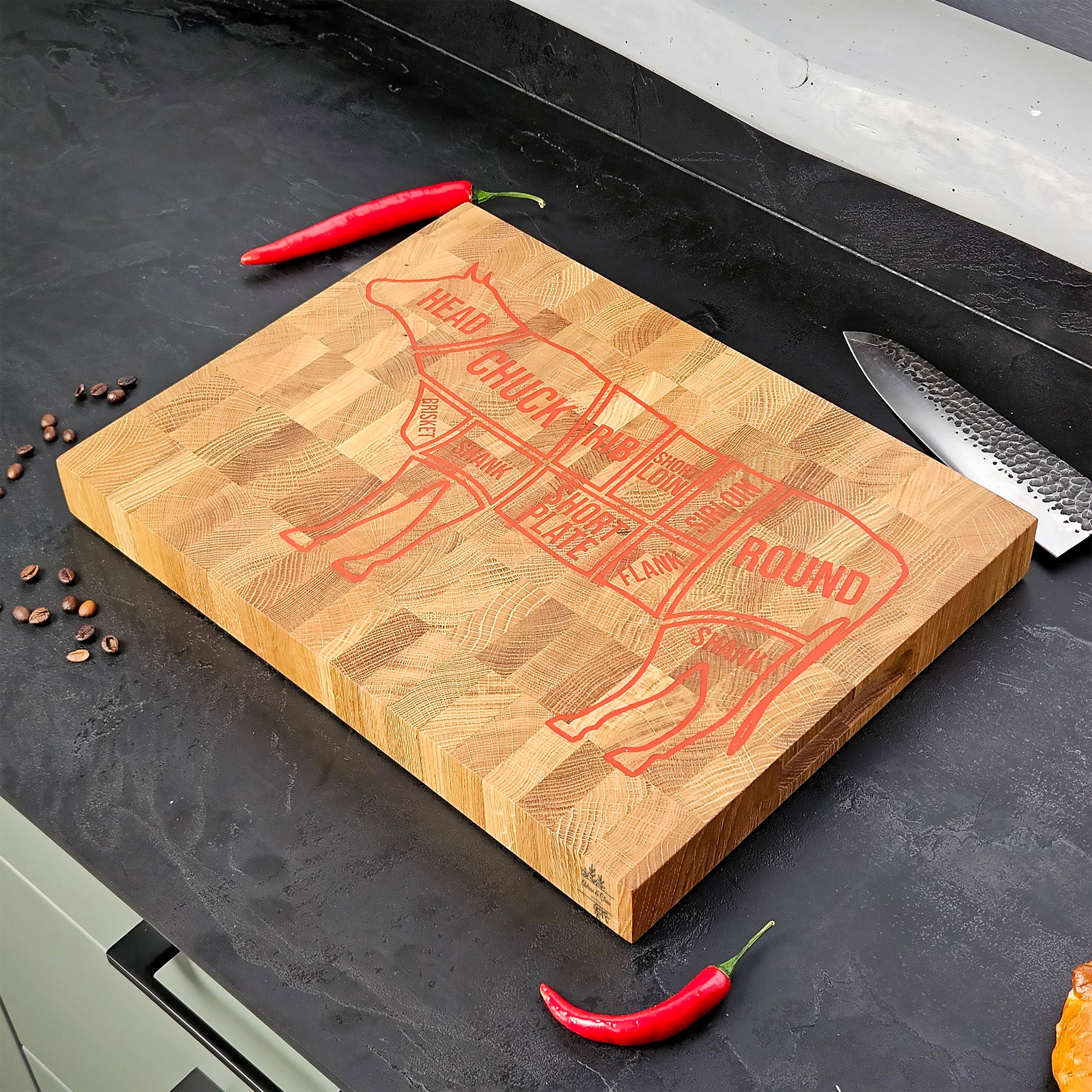 This oak cutting board with a charming cow design adds character and style to your kitchen. Use it for chopping vegetables or bread, or as a serving board for snacks and treats. Easy to care for and visually appealing, it’s a functional piece that also brings a rustic touch to your home.